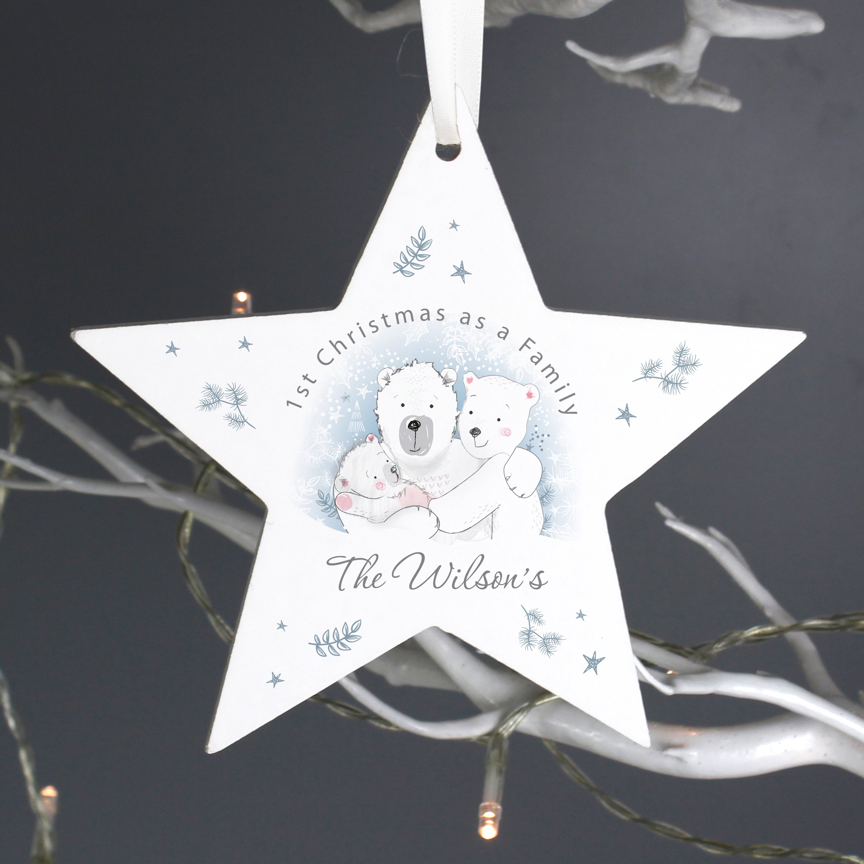 Personalised 1st Christmas as a Family Wooden Star Decoration