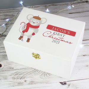 Personalised '1st Christmas' Mouse White Wooden Keepsake Box
