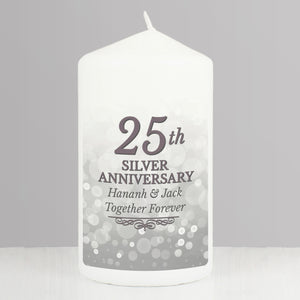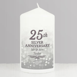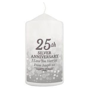 Personalised 25th Silver Anniversary Pillar Candle