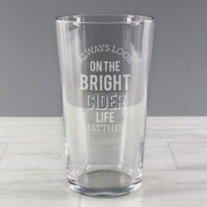 Personalised Always Look On The Bright Cider Life Pint Glass