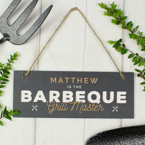 Personalised ""Barbeque Grill Master"" Printed Hanging Slate Plaque
