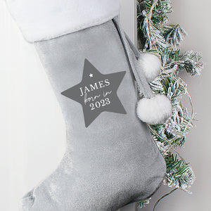 Our Personalised Born In Year Luxury Silver Grey Stocking is perfect for filling with Christmas treats!