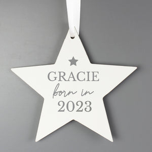This cute wooden star decoration is perfect for welcoming a little one into the world.