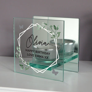 Personalised Botanical Mirrored Glass Tea Light Candle Holder