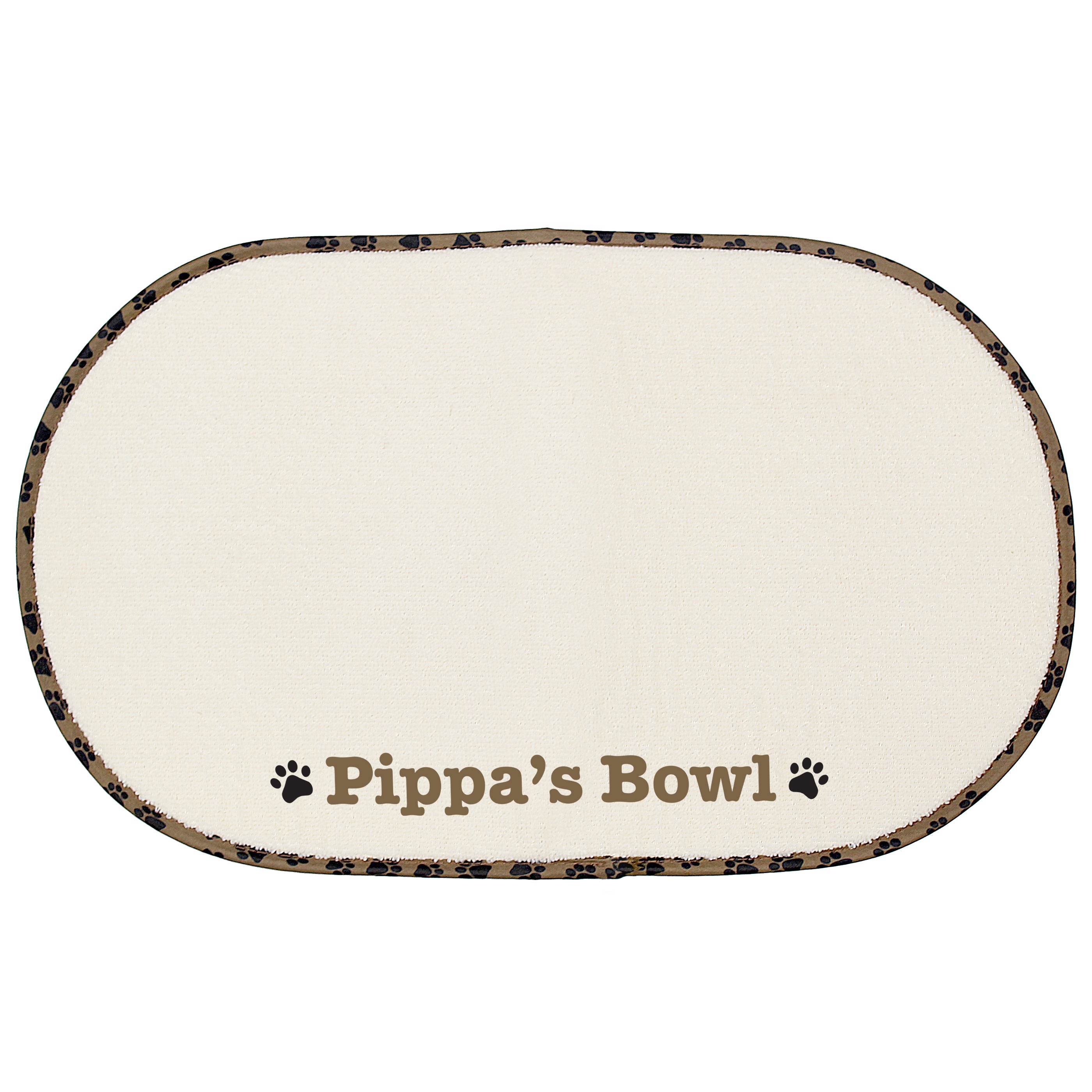 Personalised Brown Microfibre Paw Print Pet Bowl Mat