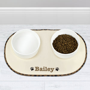 Our Personalised Brown Paw Print Pet Bowl Placemat is perfect for catching water and food from your adorable messy