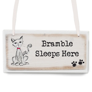 Personalise this Cat Wooden Sign with up to two lines of up to 15 characters on each line.