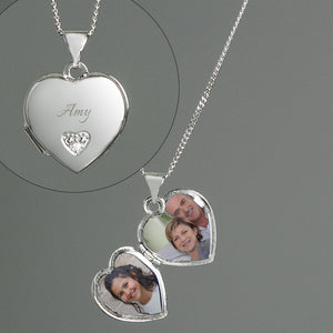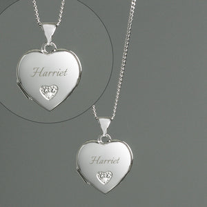 Personalised Children's Sterling Silver & Cubic Zirconia Heart Locket Necklace