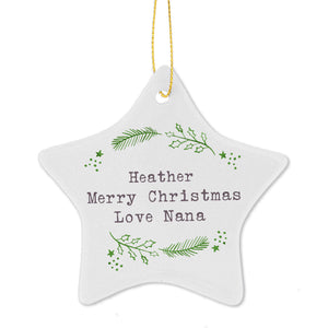 You can personalise this cute ceramic star decoration with up to 3 lines of 15 characters per line.