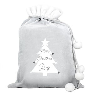 Personalised Christmas Tree Luxury Silver Grey Pom Pom Sack
