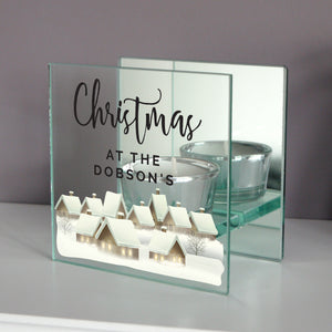 Personalised Christmas Village Mirrored Glass Tea Light Candle Holder