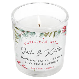 The beautiful scented glass candle jar features a Christmas themed label which can be personalised as below