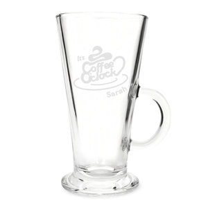 You can personalise this latte glass with a name up to 12 characters in length. The words 'It's Coffee O Clock' are fixed.