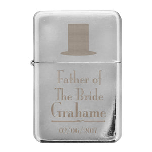 Personalise this Decorative Wedding Father of the Bride Lighter with a name up to 12 characters and a date up to 20 characters.