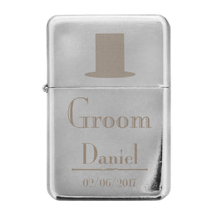 Personalise this Decorative Wedding Groom Lighter with a name up to 12 characters and a date up to 20 characters.