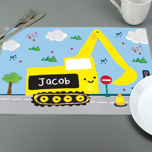 Bring the fun back to dinnertime with our Personalised Digger Placemat!
