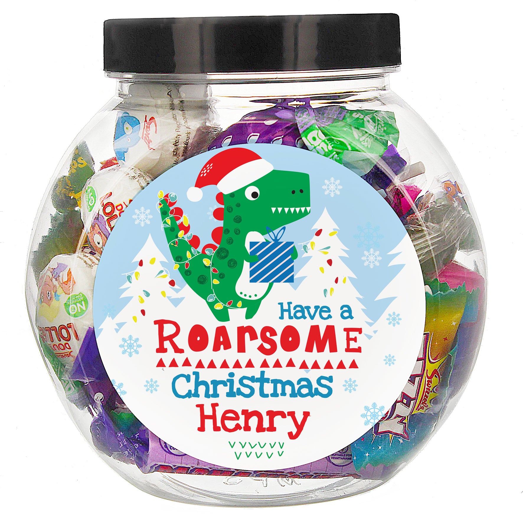 Personalised Dinosaur 'Have a Roarsome Christmas' Sweet Jar