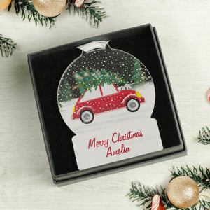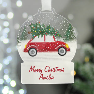 Personalised Driving Home For Christmas Acrylic Snowglobe Decoration