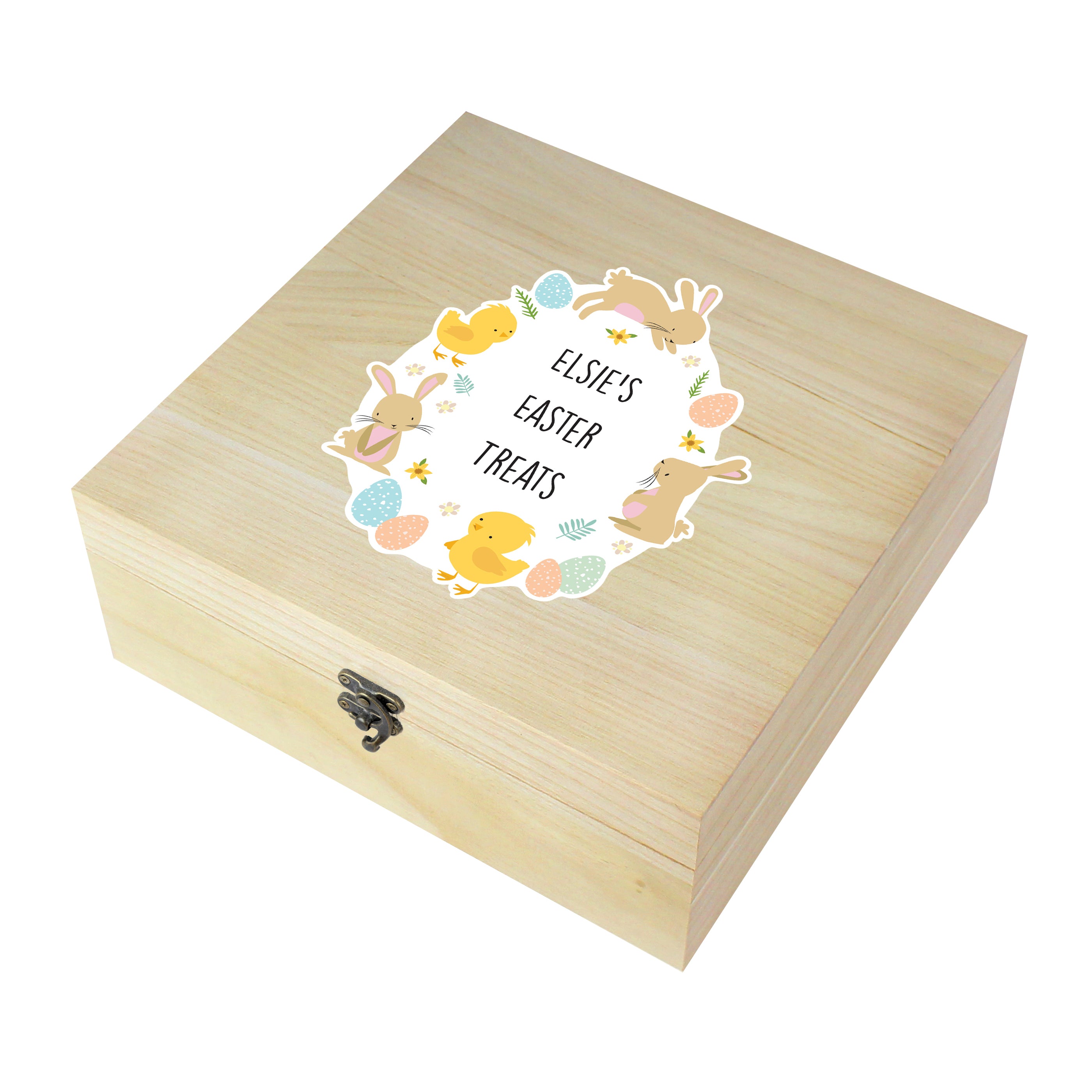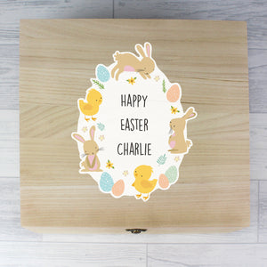 Personalised Easter Bunny & Chick Large Wooden Keepsake Box
