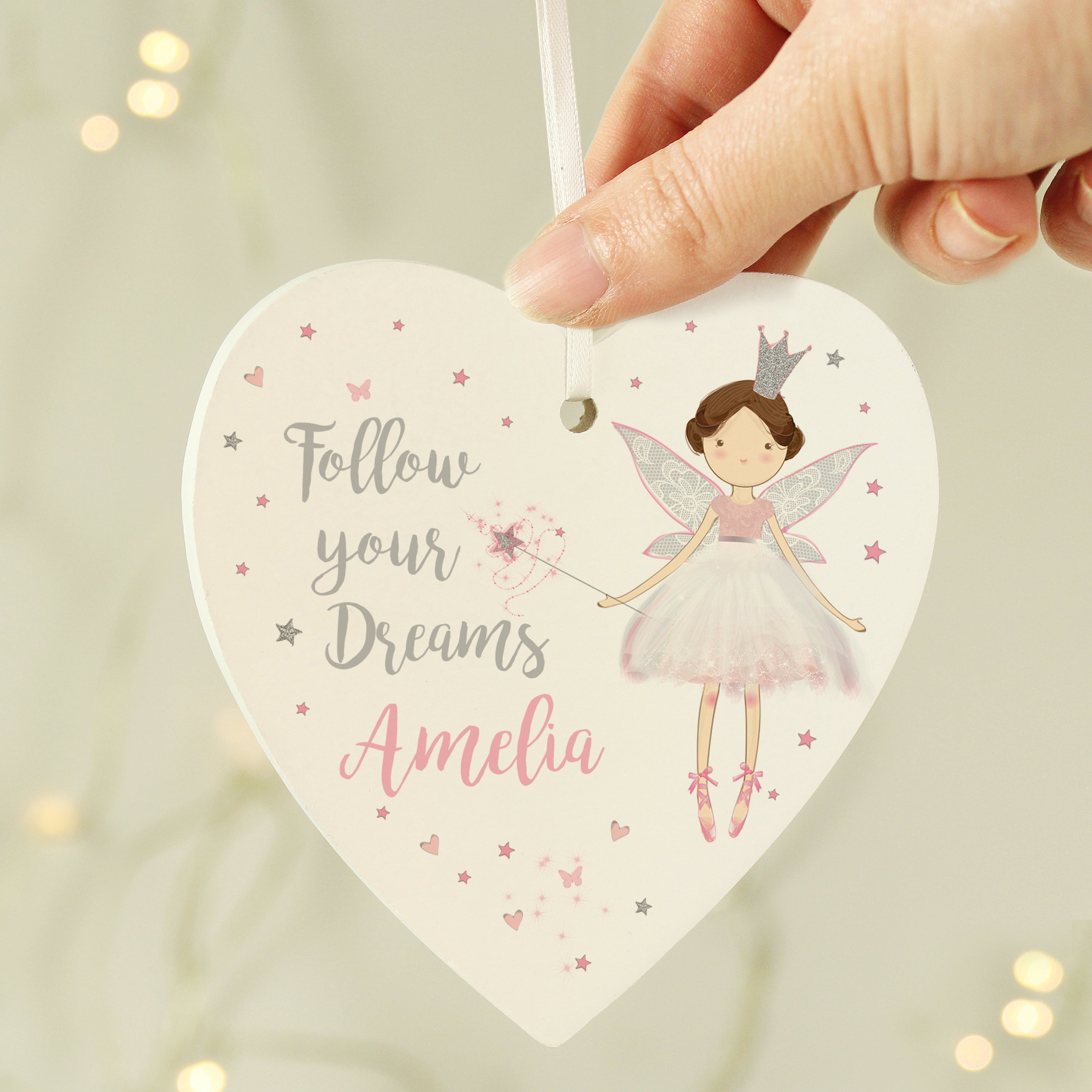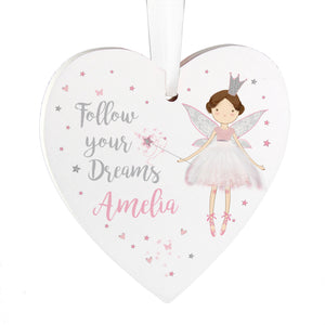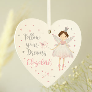 Personalised Fairy Princess Wooden Heart Decoration