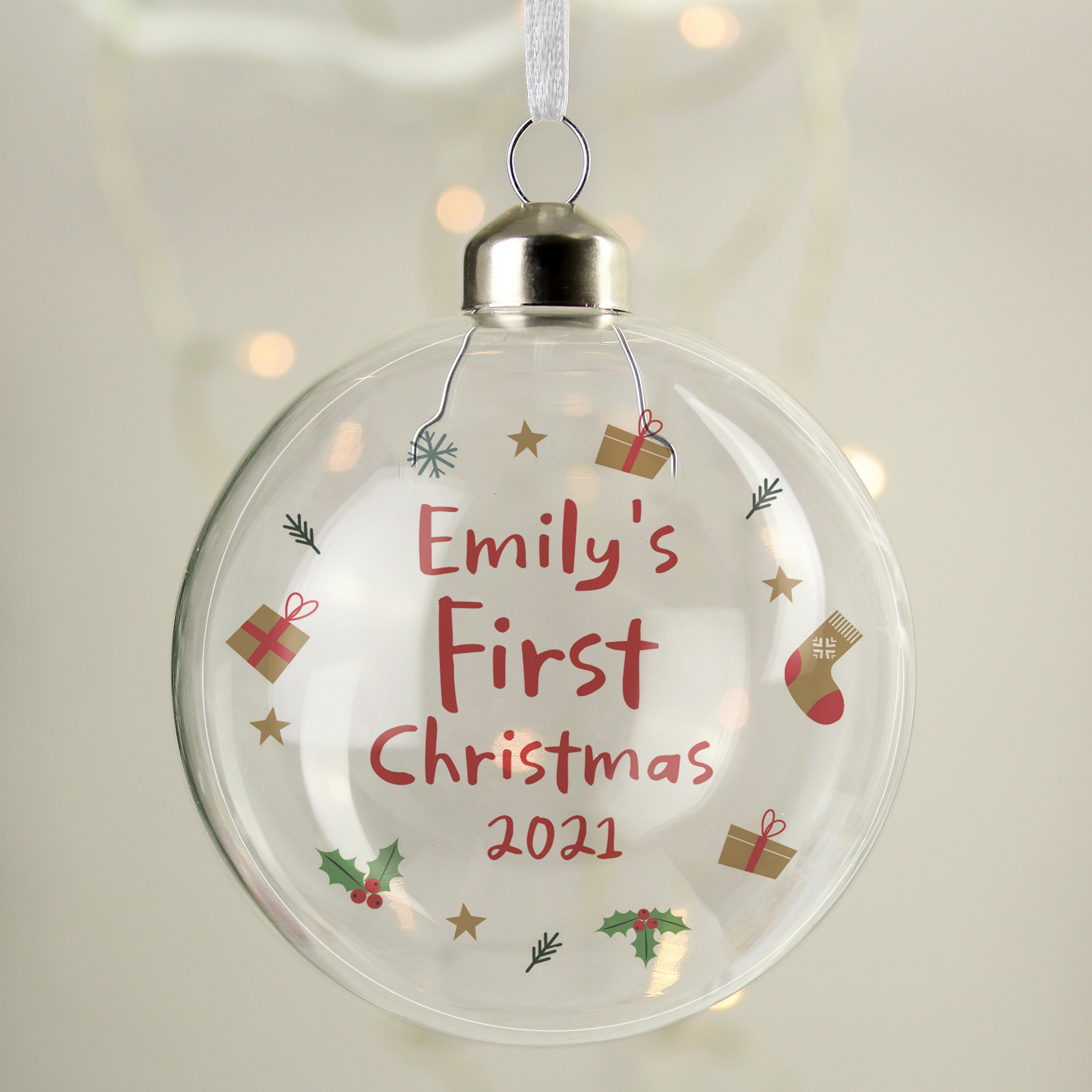 This Personalised First Christmas Glass Bauble is a great way to add a personal touch to the Christmas tree.