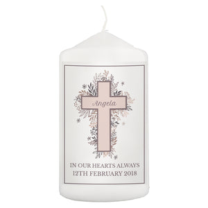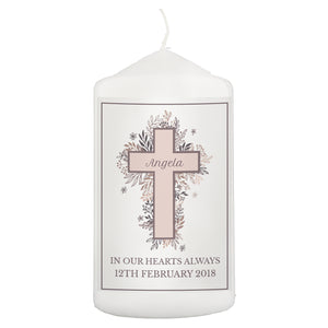 This lovely Personalised Memorial Cross Candle is a special way to remember a loved one or celebrate a special occasion.