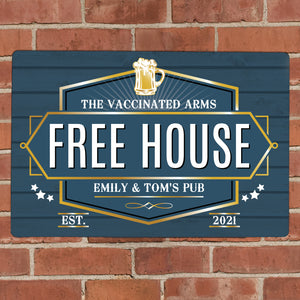 Personalise this sign with 2 lines of 20 characters per line and a year up to 4 characters long. "Free House" & "EST." is fixed text.