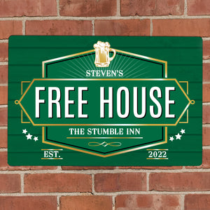 Personalised Free House Green Metal Sign