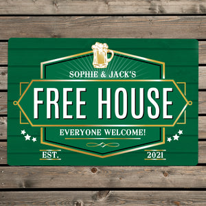 Personalise this sign with 2 lines of 20 characters per line and a year up to 4 characters long. "Free House" & "EST." is fixed text.