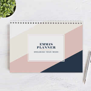 Personalised Free Text Navy & Blush A4 Desk Planner