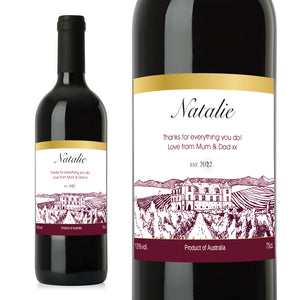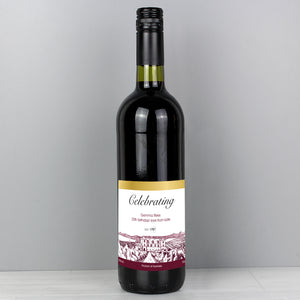 Personalise this Red Wine with a name up to 12 characters and the year being celebrated up to 4 characters long. You can then add a message across 2 lines up to 40 characters per line. All personalisation is case sensitive and will appear as entered.