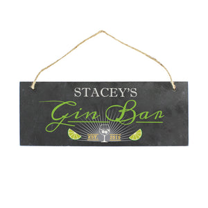 Personalised ""Gin Bar"" Printed Hanging Slate Plaque