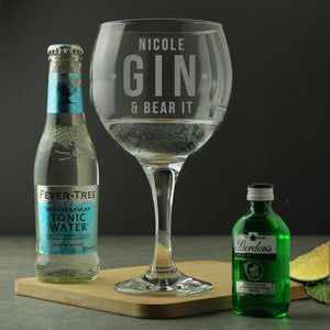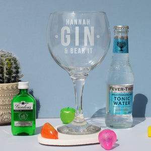 You can personalise this gin glass with a name up to 12 characters in length, the text Gin & Bear It' is fixed and cannot be removed.