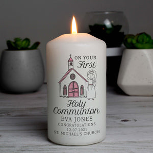 This personalised pillar candle is a gorgeous commemorative gift for any little one's First Holy Communion.