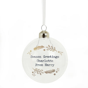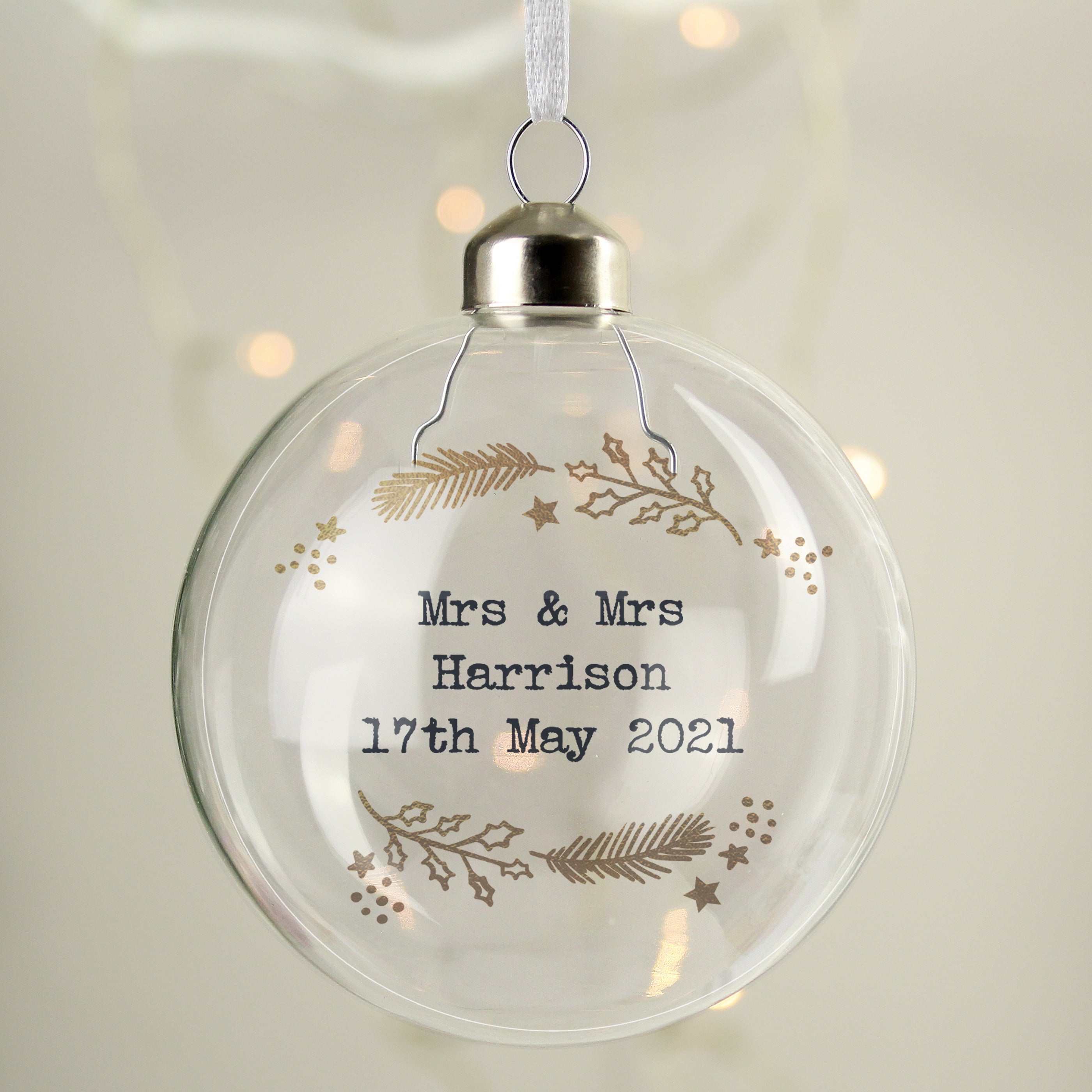 This Personalised Gold Wreath Glass Bauble is a great way to add a personal touch to the Christmas tree.