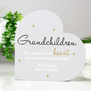 This Grandchildren free standing heart ornament makes the perfect gift for any Grandparent!