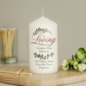 This stunning In Loving Memory Wreath Candle is a elegant and thoughtful way to honour the memory of a loved one during the festive season.