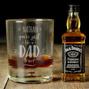 Personalise the glass tumbler with a name of up to 12 characters above the fixed quote 'You're just like a dad to me'.