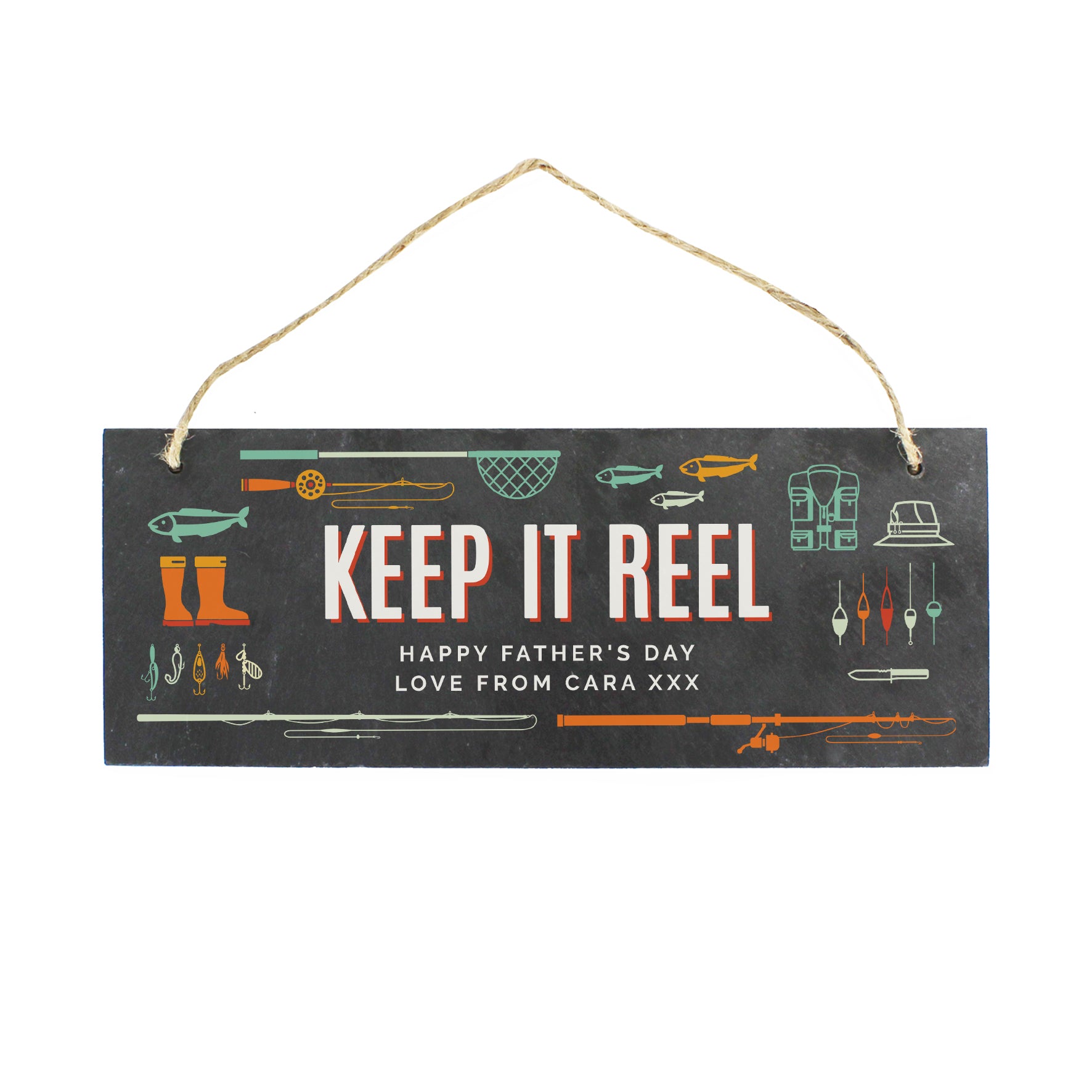This personalised slate hanging decoration is the perfect catch for any keen angler.