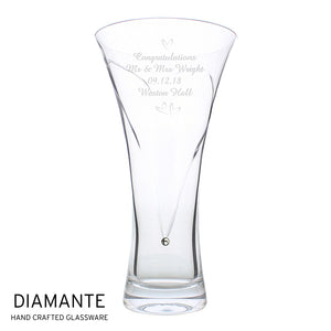 This diamante vase features a cut heart swirl design. It also features a small hearts design underneath the personalisation.