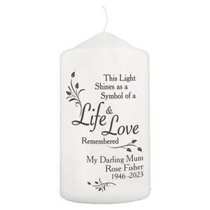 Personalise this Life & Love Candle with 2 lines of 25 and a date of 15 characters.