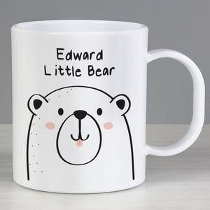 Personalise this adorable shatter proof plastic mug with a name with up to 12 characters on the front of the mug.