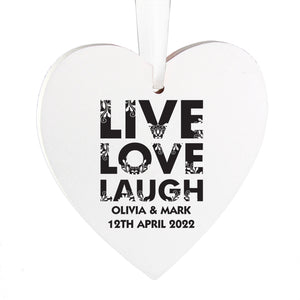 Personalised Live Love Laugh Wooden Heart Decoration