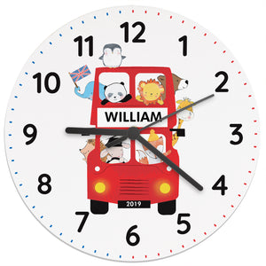 Our Personalised London Animal Bus Wooden Clock is the perfect addition to a nursery or to a bedroom.