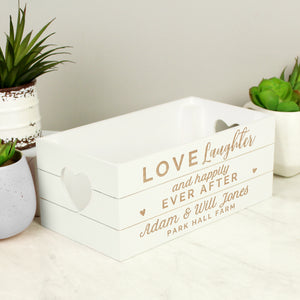 This personalised white wooden crate is a great way to add a personal touch to any home!