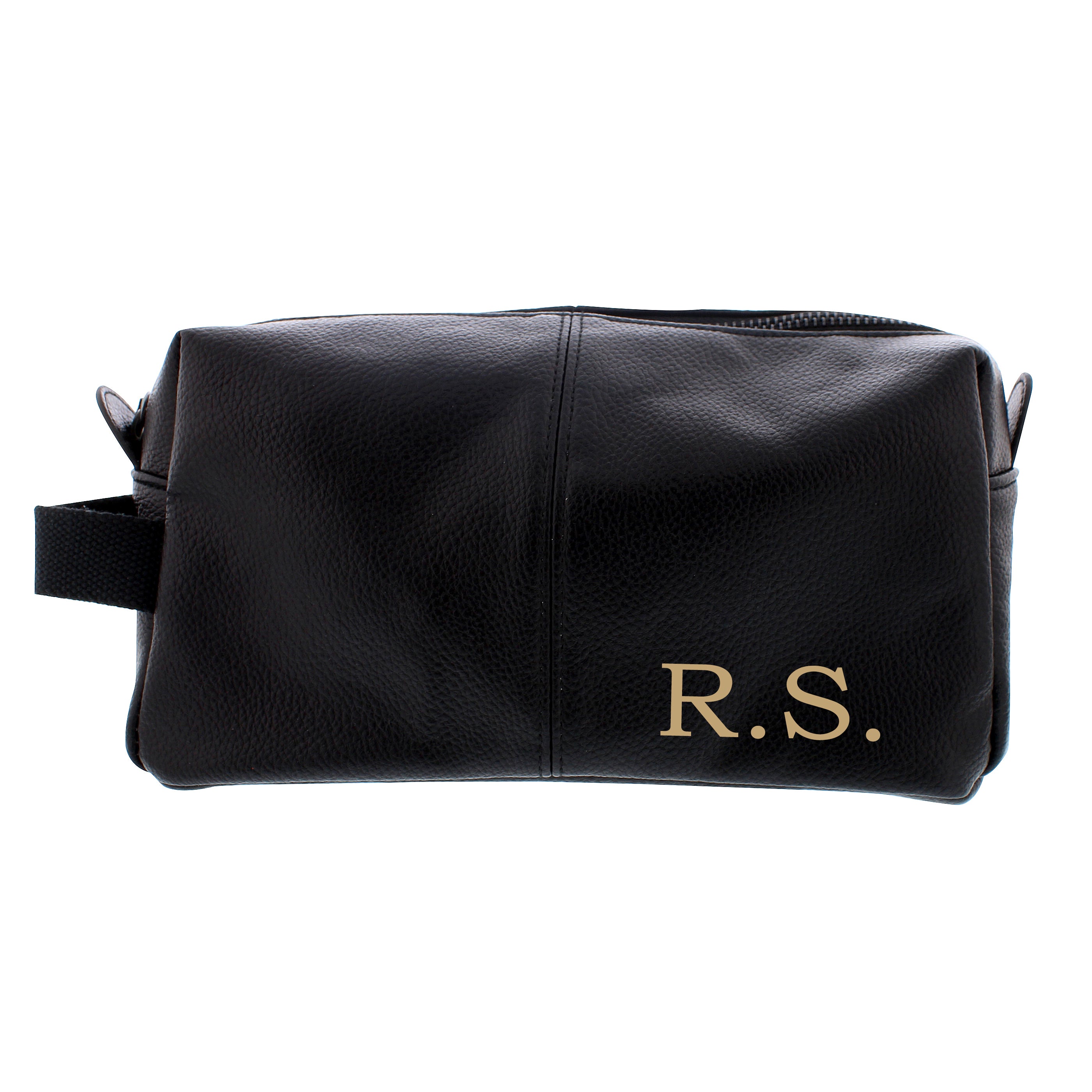Personalise this black leatherette washbag with a set of initials please include the full stops if required, there is up to 5 characters available.