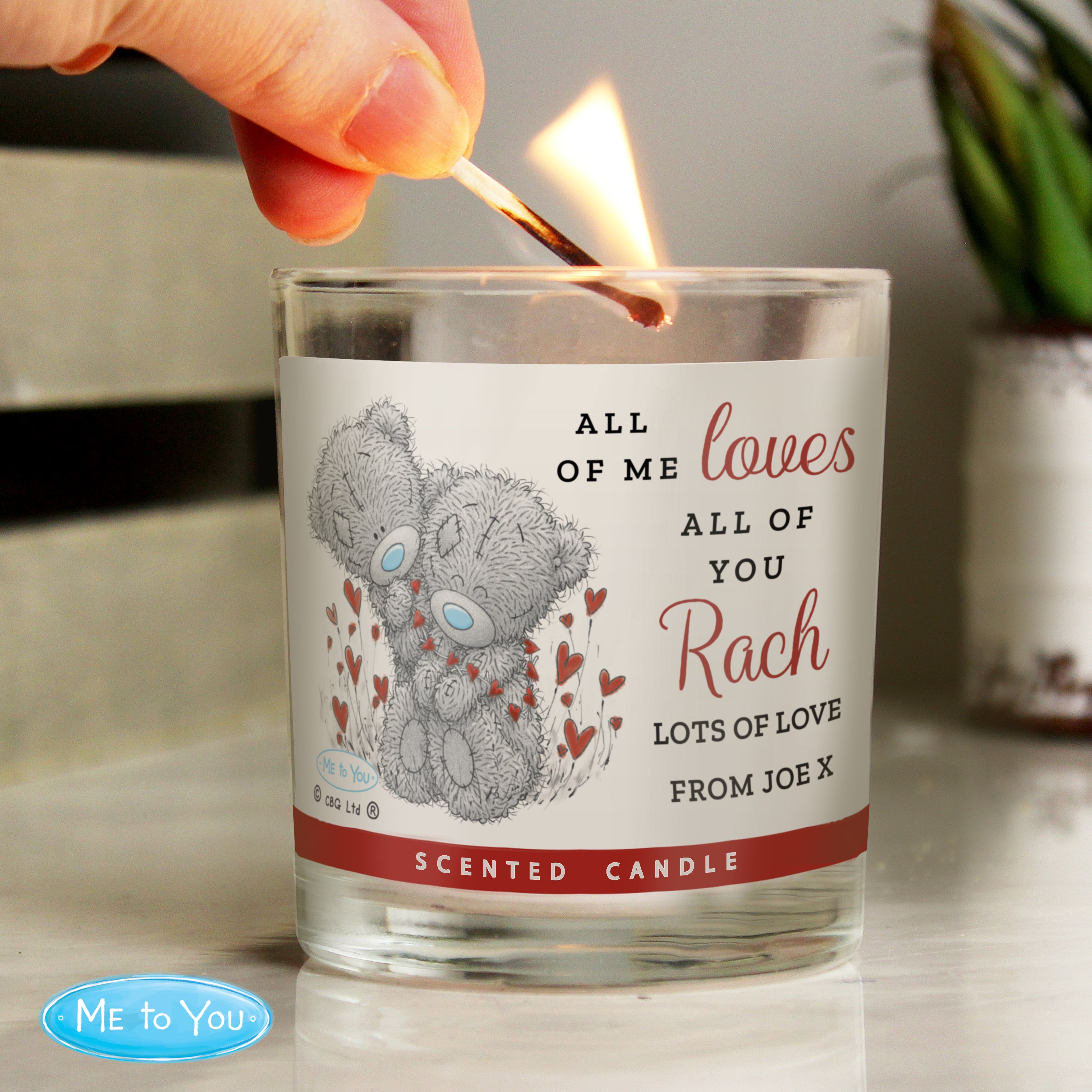 Personalise this Me to You Valentine Jar Candle with a name up to 12 characters and a message of 2 lines with up to 15 characters per line.