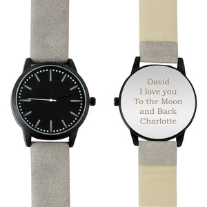 This Stunning Personalised Men's Black Watch with Grey Strap is the perfect gift to show that special man how much you care.