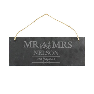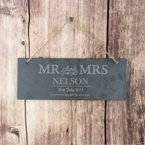 Personalise this Mr & Mrs Door Sign with a couples surname up to 15 characters and date up to 20 characters.