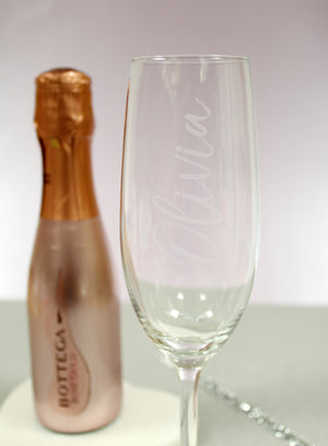 Personalised Name Only Flute & Mini Rose Bottega Prosecco Set